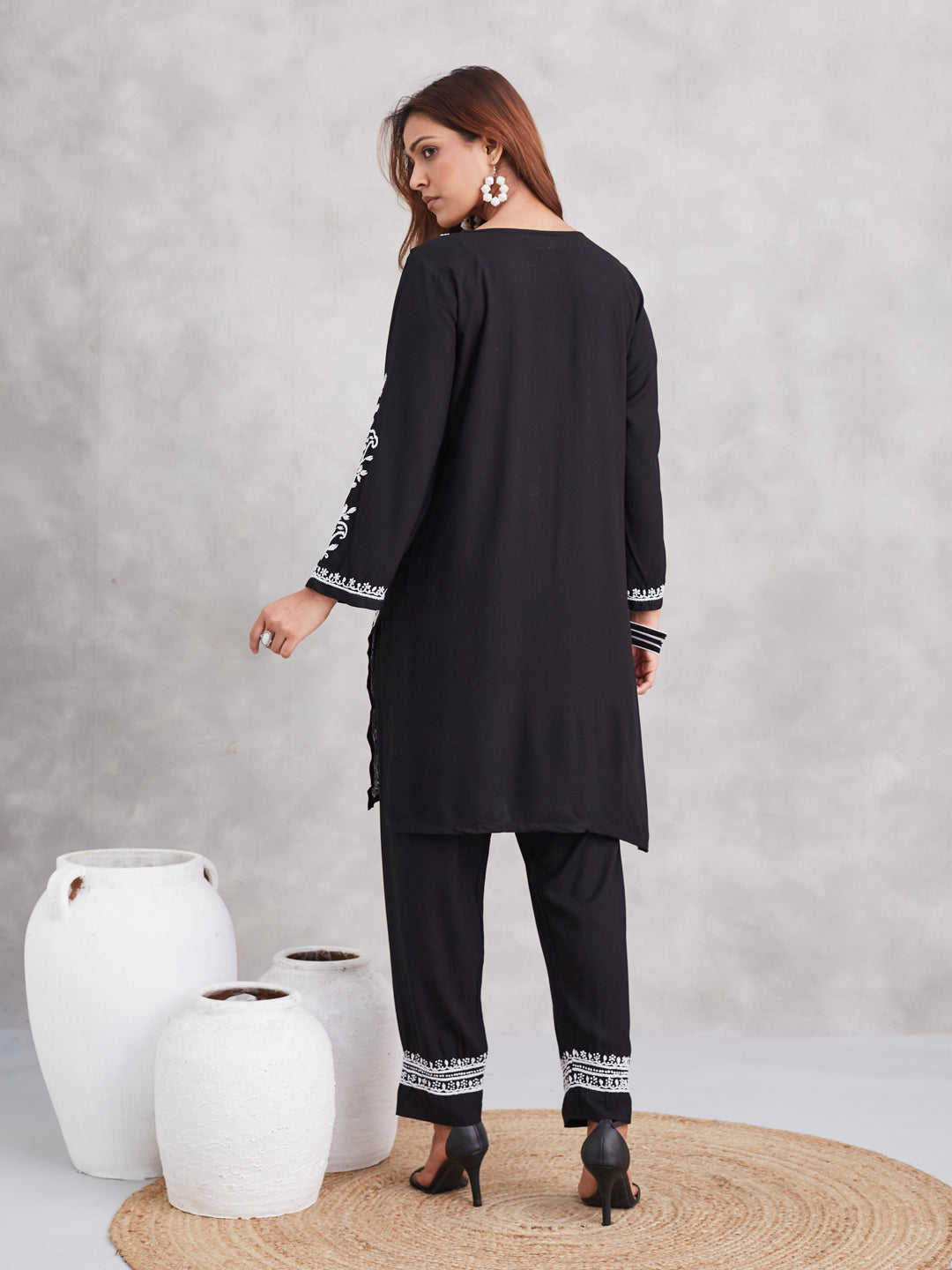 Lux Rayon Chikankari Kurta Co-ord Set - Black