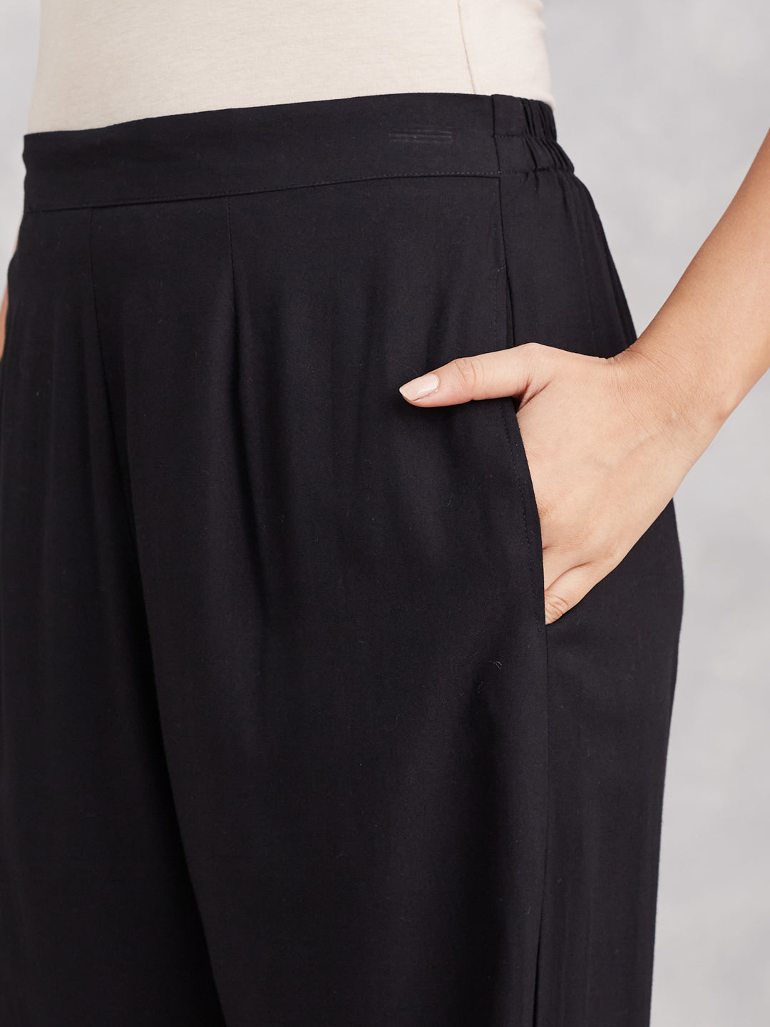 Timeless and sophisticated, this black luxury rayon chikankari kurta set is a statement in classic refinement and modern comfort. The straight-fit kurta is hand-embroidered with delicate floral Lucknowi chikankari motifs in white adorning the border and sleeves for a dramatic contrast.