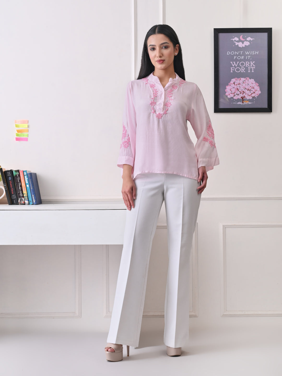 Delicate Bell Sleeve Chikankari Top - Pastel Pink